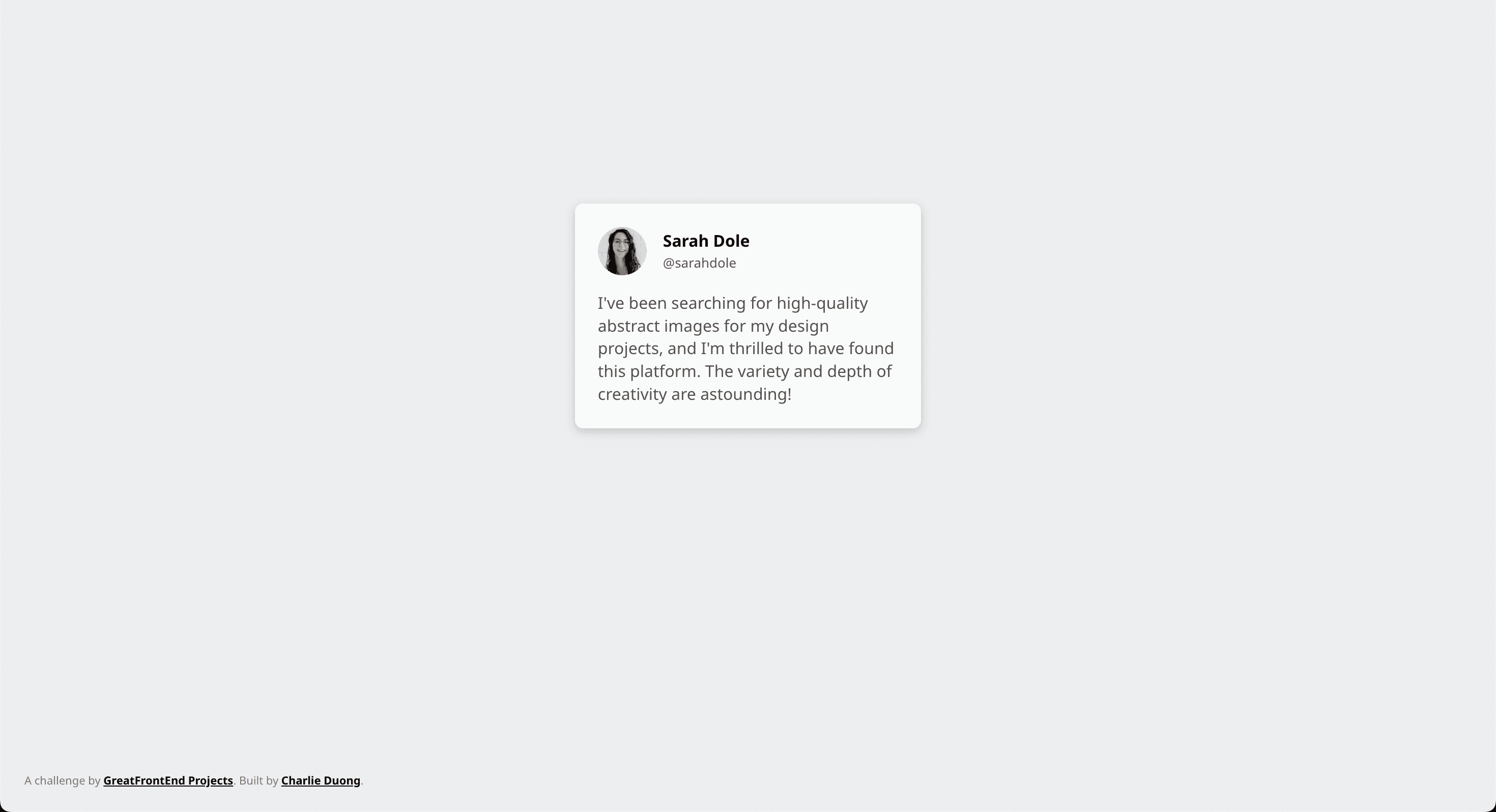 Developed a card featuring a user testimonial, including a profile image, name, username, and the testimonial body.